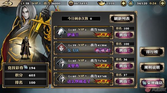 对决中对手的战力影之刃的显示太坑爹了,比如那个59的女飞侠显示4W1的战力,但实际是5W左右的,所以我现在只能选择这种实际战力5W左右的打基本都是逆袭的,本来我就跨着1W多战力在对决,如果差太多了,实在无法破甲。我觉得这个游戏破甲是关键,没甲了,怎么虐怎么有。