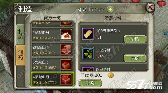4品凝血丹:增强血上限27720,需要100级药品秘方一张,三品药材50颗,四品药材50颗方可制造,制造需要消耗200金币,消耗10点真气。