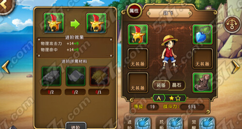 海贼装备的属性是直接附加在海贼身上的,所以也是决定着战斗力的,玩家对于装备需要重视起来。装备目前有两种方法提升属性,进阶和洗炼。进阶需要相应的材料才可以进行,当然材料的获取在游戏中也给的很清楚的,缺乏材料可以直接扫荡获取或者挑战也是可以的。