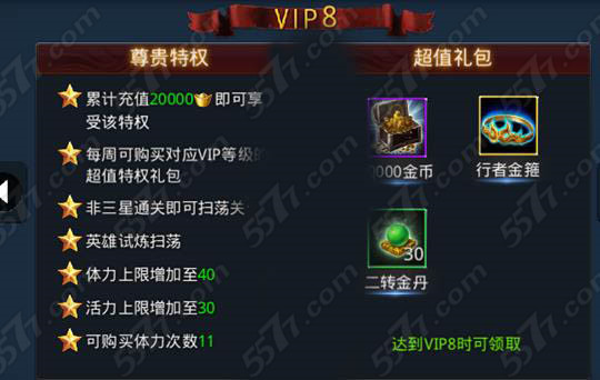 累计充值20000元宝自动成为VIP8。