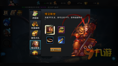 为什么小熊要这么推荐呢,因为一共加起来31元,充值300元宝到达VIP2,就可以领取超级强力物理输出英雄孙悟空了!