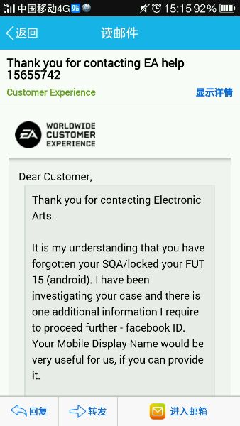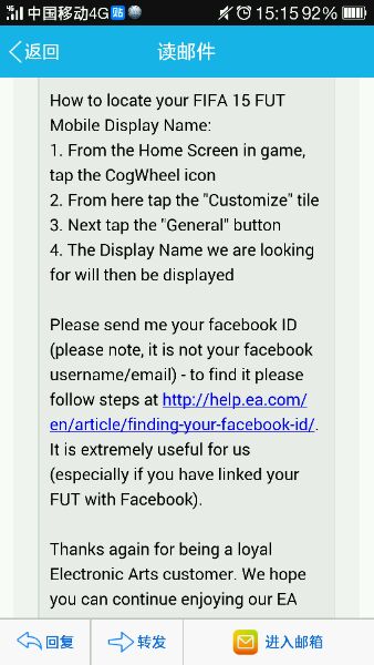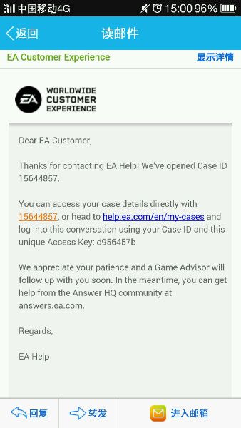 发给EA客服,他会让专家另外解决,此时你只能等候消息。