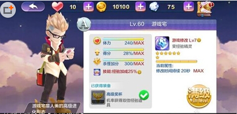相信看到属性图大家都明白了吧,快速升级游戏宅的重点是因为他有经验加成的技能,搭配游戏道具公主帽子和天书、双倍经验石。平均八十万分就能拿到六千多万的经验,这样在忍者们还停留于苦逼升级的时候,你已经先人一步体验到火箭般升级的快感。等游戏宅等级达到20级时,金币也随之上来了,这时候便可以解锁可爱的小狐妖了。
