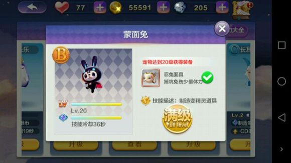 不过这只是针对像楼主那样苦逼的把蒙面兔升满的。其他人如果没有练黄精灵也没升蒙面兔建议还是选择狐狸的宝珠,额外提一下,蒙面兔十级之后是要用钻升级的,大概三百钻,反正天美是把我坑惨了,大家量力而行。