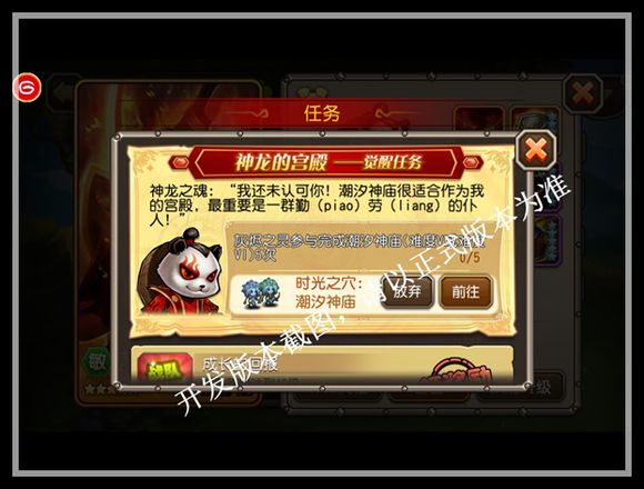 觉醒任务第二环:潮汐神庙难度5或难度6,5次。