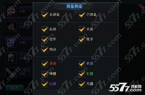 然后紫色装备、金色装备主要通过装备合成来得到,当然RP好的,天赐神兵可以抽到紫色的。