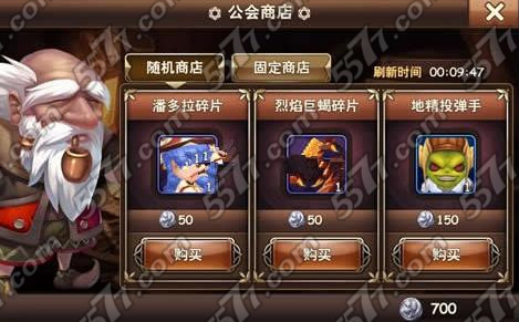 在游戏中公会系统的商店里面,这里的随机商店也是会刷出一些英雄碎片,和女巫商店一样,也有5星的也有4星,但是看到自己需要的英雄的时候,就不要手软啊!