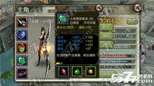 最后说说关于装备的个人心得,我个人的建议是,发现战斗力高装备,别管颜色果断换。强化打星的石头不要直接买,慢慢打,而且在60级之前尽量不要打星,提升真心不大,强化倒是可以稍微强化下。