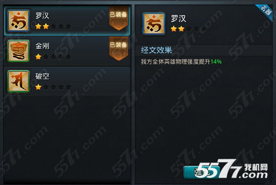 罗汉:我方全体英雄物理强度提升7、14、21、28、35%,有就上