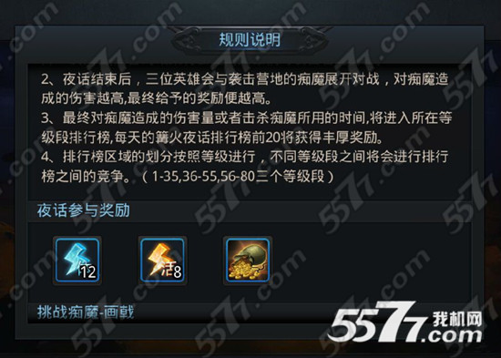 篝火夜话于每日晚间20-24点开启。夜话开始后,痴魔将潜入营地,以无明之力影响诸位英雄的心智。与英雄间进行的夜话将唤醒他们的慧心,对抗痴魔的侵蚀。