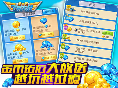 最豪华福利版本怎能少得了金币和钻石的洗礼?11月18日至20日,首充福利、PK送钻、清任务送金币高潮迭起,绝对让你一次赚个够!首充6元送168钻活动再度来袭,轻松拿下开启征程;每日参与世界PK两次即送20钻石,不赢也送哦!完成4次每日任务再领5000金币,多多益善等你来战!三日狂欢、三重推送,就让时光再走慢一点吧!