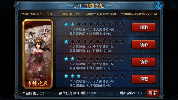 刷新1次,所有任务内随机一个任务增加1个星星。