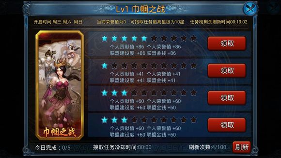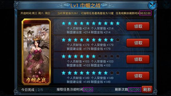 注意右上角有自动刷新任务的时间,刷新了任务记得领取并完成,不然会被系统自动刷掉。