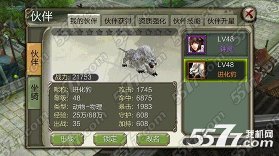 上面就是小编为玩家们介绍的天龙八部3d 橙色进化豹资质加点攻略,希望对玩家们有帮助。更多精彩的游戏攻略欢迎关注5577我机网!