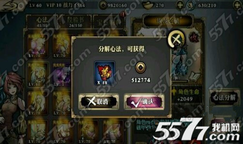 3、紫色品质以下的心法分解后的产物依旧是心法本身的残页;