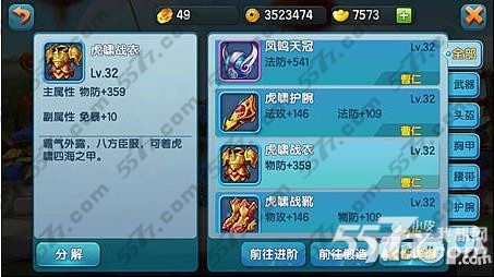装备分解可以获取装备进阶所需要的一些材料、强化石和铜钱等,如果有不用的装备可以考虑拿去分解了而不要拿去直接卖商店。