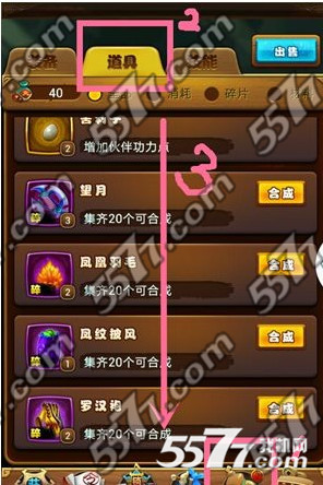 4、进入道具后,向下翻,就能看到装备碎片了,点击合成就可以合成装备。如果装备碎片不足就不能合成。