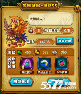 上面就是小编为玩家们介绍的仙剑奇侠传手游金翅凤凰打法攻略,希望小编的介绍对玩家们有帮助。更多精彩的手游攻略,敬请继续关注5577我机网!