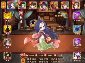 主角1:105级貂蝉,14级离间,14级焚城,智力3714
