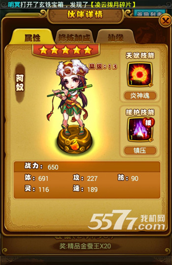 镇压这个援护一般没什么用,但是某些情况下有奇效,比如锁妖塔(PS.如果以后全民+5了这个援护有加分)