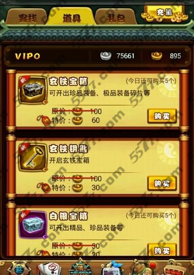 玄铁宝箱:可以开出出珍品装备、极品装备碎片等。(60元宝)