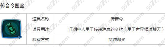 道具用途:江湖中人用于传递消息的令牌(用于世界频道聊天)