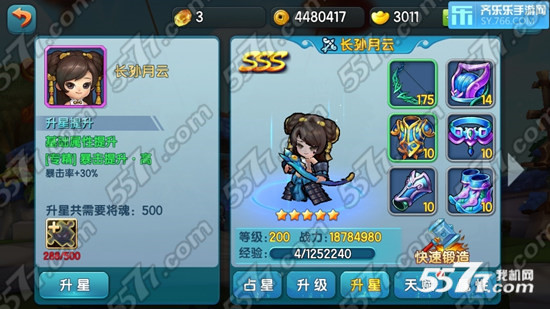 武将升级技巧2:小伙伴们可以使用经验药水快速的提升武将的等级哦!