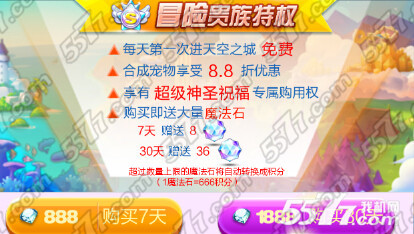 2、冒险贵族特权购买7天价格是388钻石,购买30天价格是1280钻石。