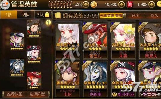 玩家根据阵型选择不同的阵容,基础阵型:前方2张为防御型的英雄,后方3张为攻击力的阵型。当然后中其实可以换成辅助型的英雄,这样在副本战中也是非常有效的。