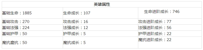 定位:后场混合型,是一个强大的混伤英雄,法伤输出也不错,可以提升队友的攻击力。