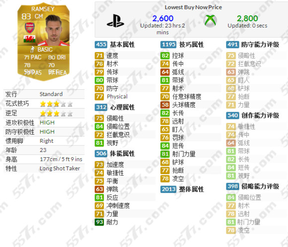 fifa15拉姆塞是英超中的一位比较适合入手的球员之一,性价比高不说,能力也不错~!难么说道这里大家肯定是想看看它的具体情况的,下面就来和小编一起看看吧!
