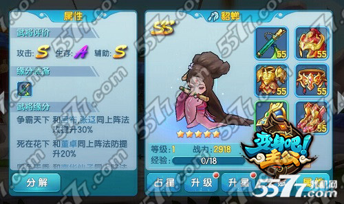 上面就是小编为玩家们介绍的变身吧主公貂蝉的阵容搭配攻略,希望小编的介绍对玩家们有帮助。更多精彩游戏攻略欢迎关注5577我机网!