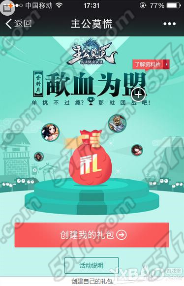 2、点击活动页面的“创建我的礼包”;