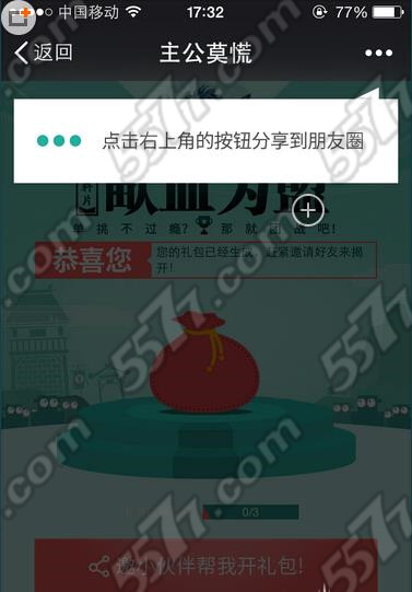 3、分享专题,邀请三位微信好友帮忙揭开礼包;