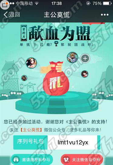 4、邀请完好友后,再次进入活动页面,点击礼包就可获得礼包序列号;