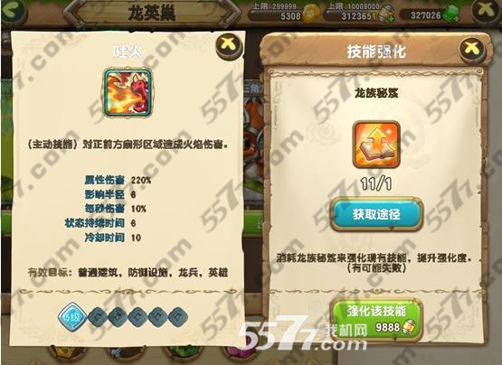 3. 通过增加强化度可以提高技能等级。当强化度满的时候自动提升一级技能等级。技能等级最高为10级。