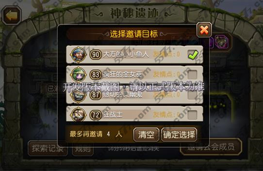 玩家在刀塔传奇神秘遗迹中邀请好友或者是公会成员,可以获得友情点奖励。