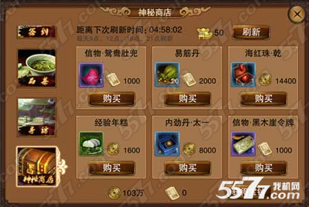 通过点击主界面上的活动,玩家可进入神秘商店,在神秘商店中,玩家可以选择用宝钞或绑定元宝购买道具或装备。
