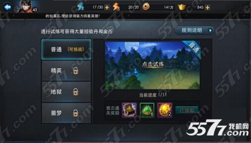 英雄试炼是个刷经验丹和金币的好去处,通过抵挡每波怪的进攻最终取得胜利,进入试炼时需要选择三名初始英雄以及6名替补(六名替补随着等级提升逐渐开放位置),英雄死亡后试炼结束,并当日不能再次挑战,值得说下的是你要通关前一难度才能挑战后续难度(先要通关普通才能精英-地狱-噩梦)!
