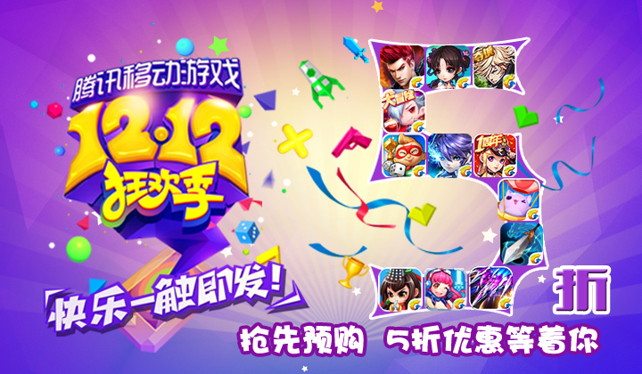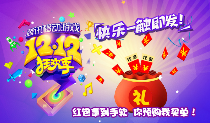 动动手指预购道具,更多意想不到的惊喜等着你!腾讯移动游戏12.12狂欢季,年度移动游戏购物盛典,精品手游联合大促!快乐一触即发,狂欢季预购活动火热进行中!