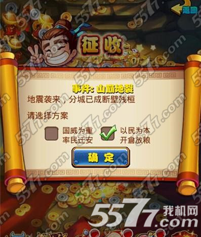 每天的福利三连发领取完毕。但是本篇文章还没有讲完哦,其实游戏中有一个很大的福利,就是征收活动。相信很多玩家注意到了,征收的时候会触发随机事件的,而不同的选择会得到不同的奖励。