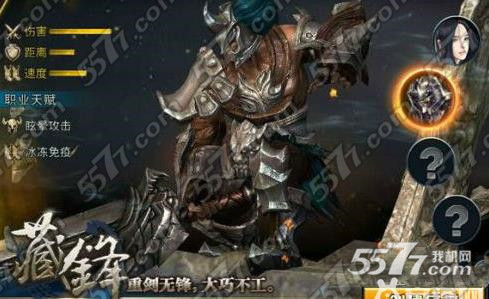 眩晕攻击,冰冻免疫。可见藏锋职业在攻击时,有眩晕效果,同时免疫冰冻技能。当然,如果存在职业相克的话,理论上应该有法师之类,有冰系技能等。