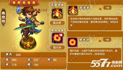 天赋:真炎斩—攻击敌方单体造成较少技能伤害,同时增加自身2回合普攻,最早第2回合释放,4回合冷却