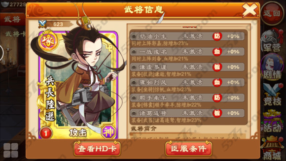 总结:普通陆逊和兵长陆逊除了缘分有差异之外,其它都一样。但就是因为缘分的那点差异,区别开了兵长陆逊和普通陆逊的实用性,可以说兵长陆逊是强于普通陆逊的。普通陆逊做主将也只能是前、中期,大后期明显主将没他的位置,很土豪陆逊还是应该有一席之地,毕竟是土豪将啊,能一个人集缘分一体。