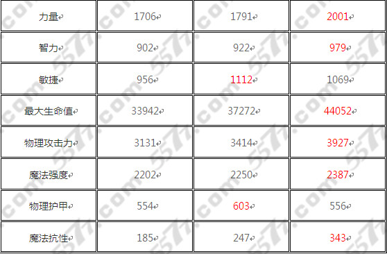 橙2:这阶段楼主认为骷髅王有那麼一点机会重出江湖,血量一口气暴增7000点,魔抗也提升近百,美中不足的是护甲竟然降回了556点!?(只比橙0阶段高了2点)楼主再次怀疑策划跟骷髅王是不是真的仇深似海....4W4的血量虽然相较其他前排高达5W+的血量仍有不小差距,但已经大大弥补了骷髅王血量过低的缺点,输出能力也提升了许多,不过整体来看,楼主仍然不是很看好骷髅王的前景。