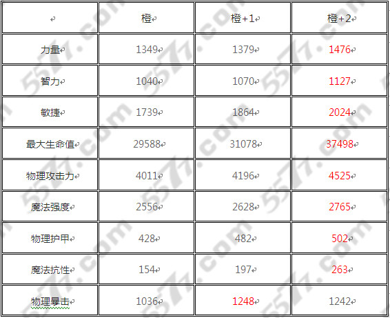 同时由於新开放的装备当中并没有增加闪避、吸血、命中属性的装备,所以就不列出这3样属性了。