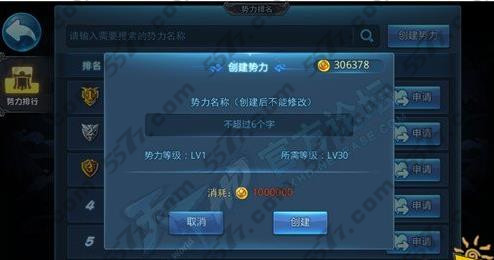 参与势力玩法的最低等级要求是30级,角色达到这个等级之后就可以创建或者加入某个势力,创建势力的话需要100W的资金,所以大家还是去别人的势力混一混就好。