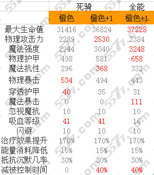 装备和属性图(死骑橙0 橙1 觉醒全能橙1)