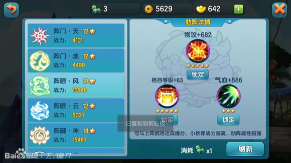2:助阵系统里存在助阵属性,这个属性会按照助阵武将战力来提升所有阵上武将的属性。举个例子,如图,楼主我通过虎符洗出了如下的助阵属性,非常不错的属性了。