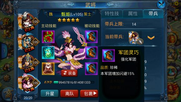 主动技能:双闪带格档,单闪单防带闪避、另外2个带解禁/趋散/不动/八门/治疗等辅助技能